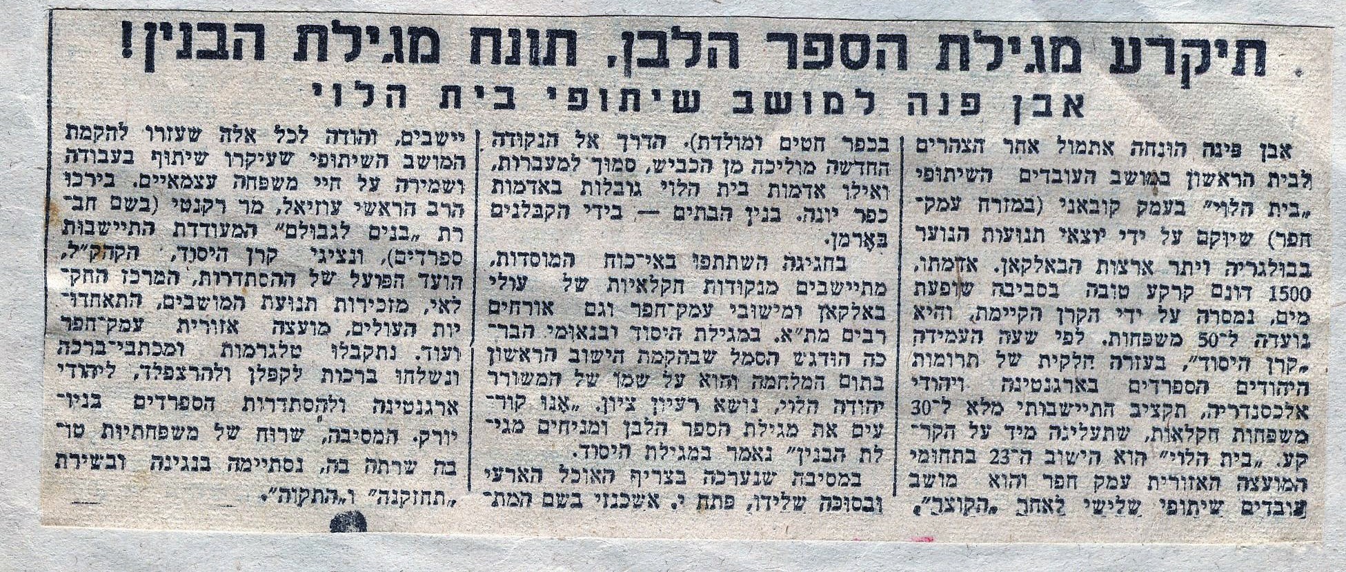 הנחת אבן הפינה וחגיגת תחילת ההתיישבות בבית הלוי אוגוסט 1945